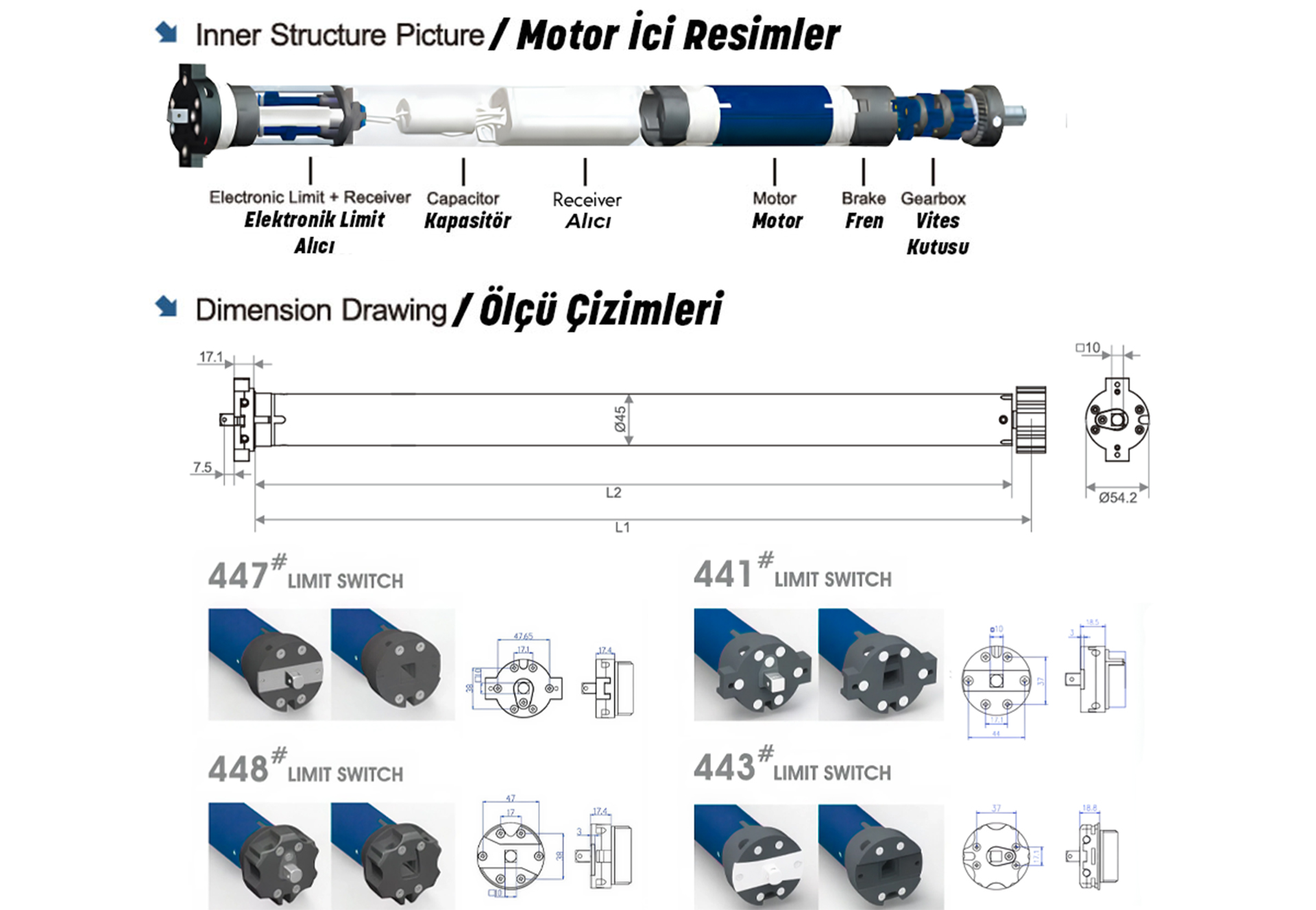 | Kod | Tork | Hız | Çap | Voltaj | Frekans | Güç | Akım | Çalışma Süresi | Tur Sayısı | L1/L2 | |||