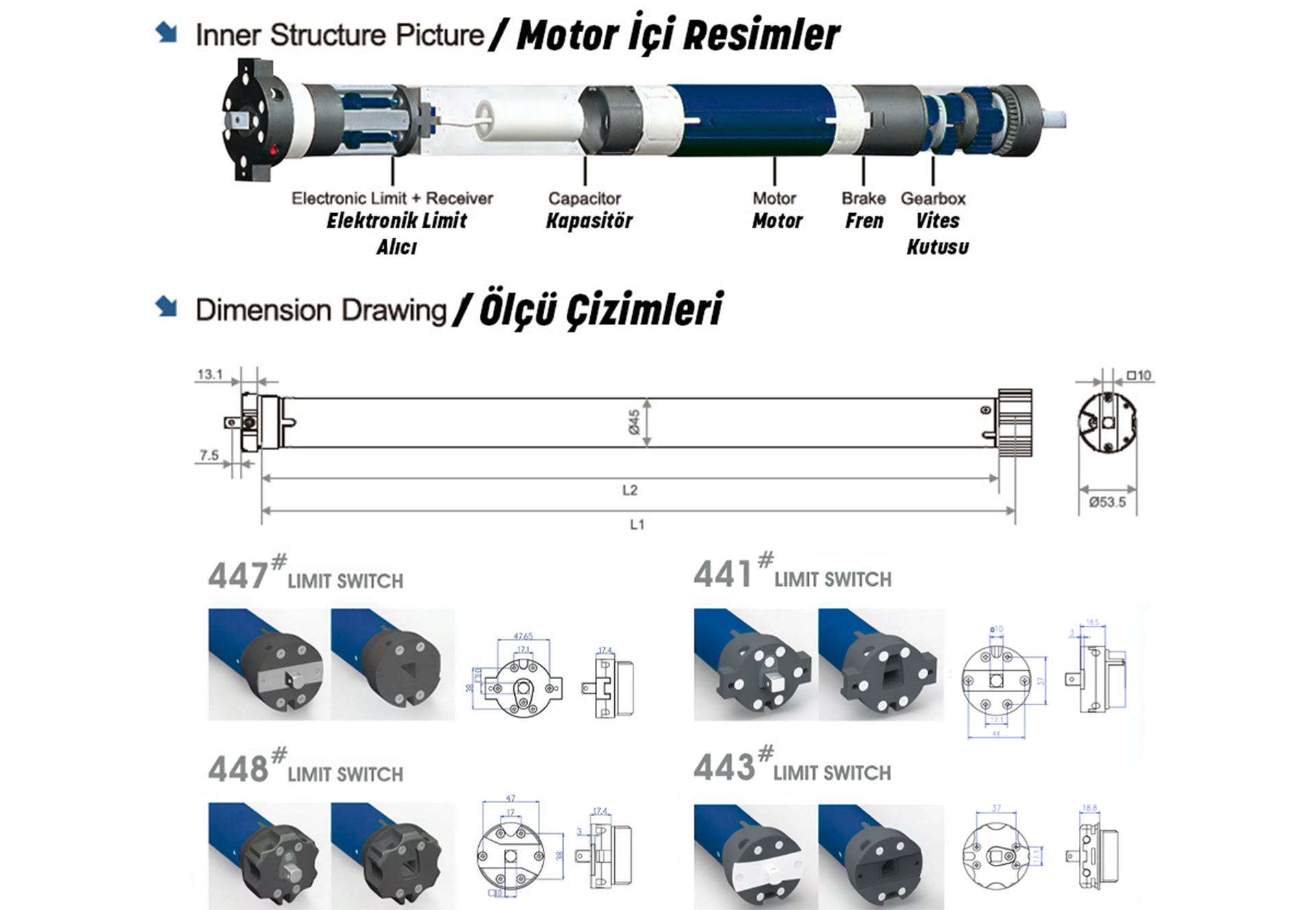 | Kod | Tork | Hız | Çap | Voltaj | Frekans | Güç | Akım | Çalışma Süresi | Tur Sayısı | L1/L2 | |||